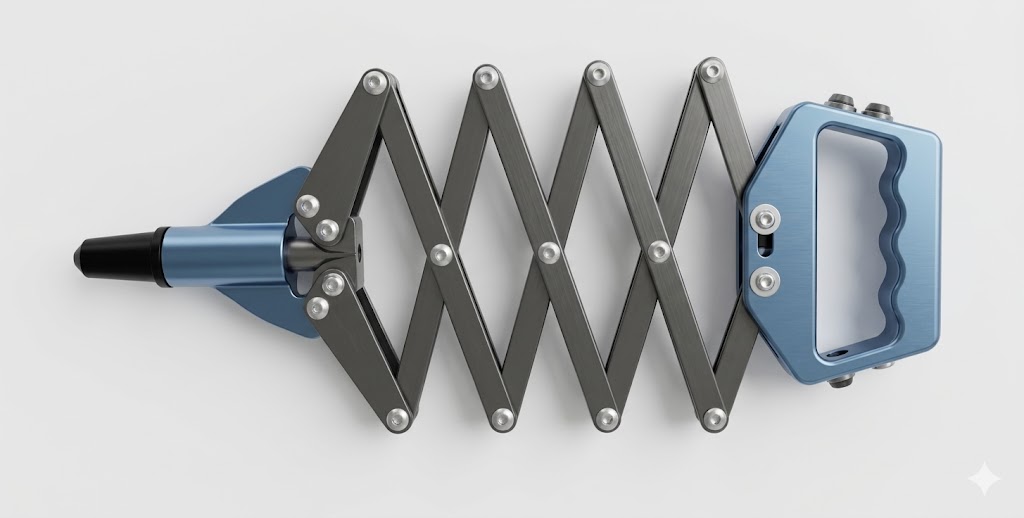 A heavy-duty lever-type hand riveter designed for maximum power and efficiency with minimal effort.