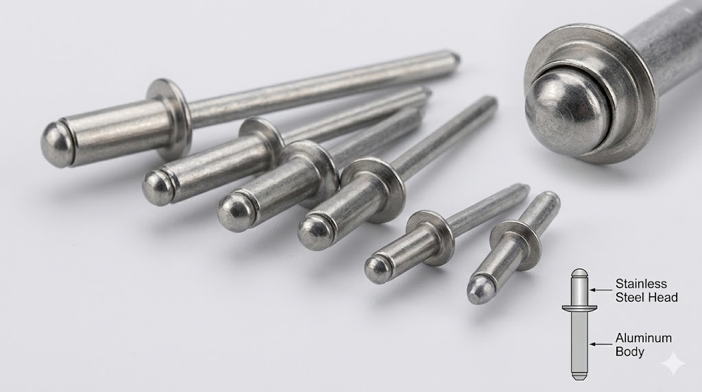 A pack of 100 premium rivets with stainless steel heads for superior strength, durability, and corrosion resistance.