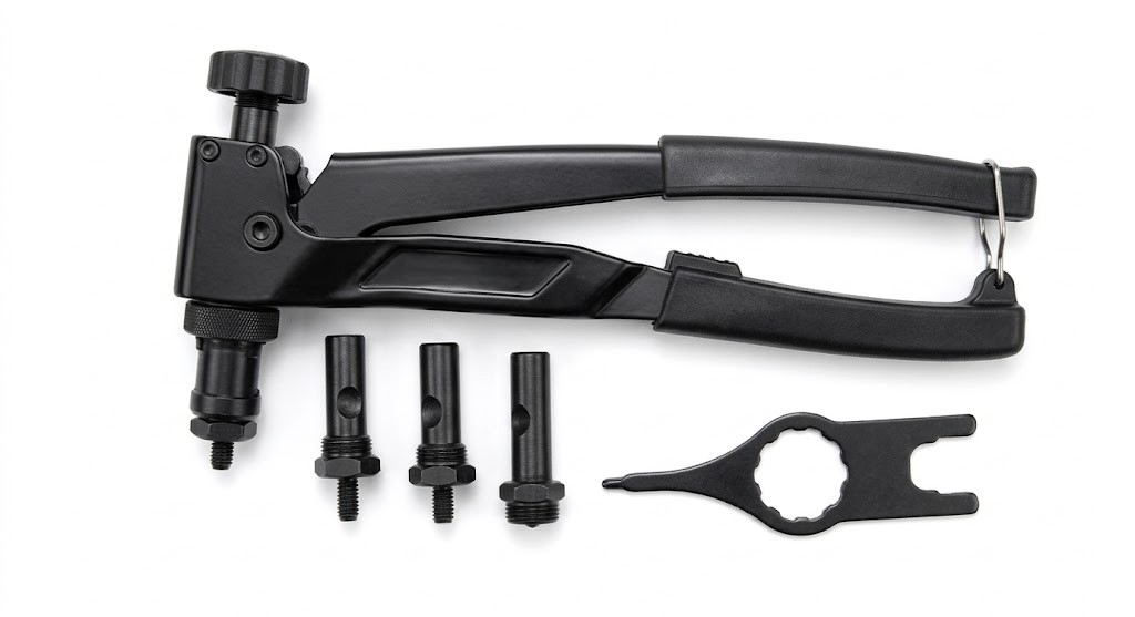A reliable screw nut gun designed for fast and secure installation of rivet nuts in sizes M3, M4, M5, and M6.