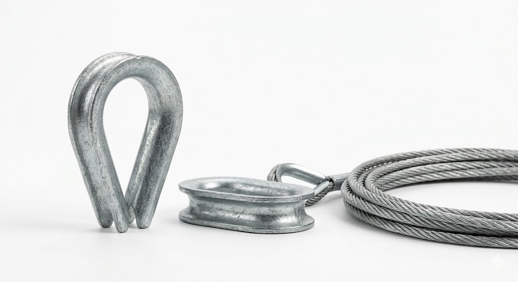 A high-strength rigging component engineered to protect wire rope loops from wear and deformation under heavy loads.